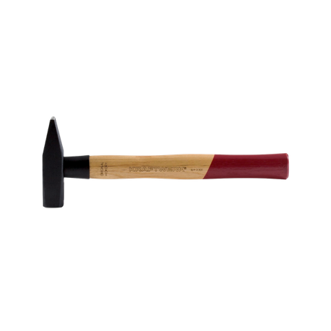 Martelo de qualidade profissional, fabricado segundo o padrão alemão DIN 1041, garantindo desempenho e fiabilidade. Possui cabeça forjada com acabamento preto, endurecida por indução e com faces polidas para maior precisão e durabilidade.